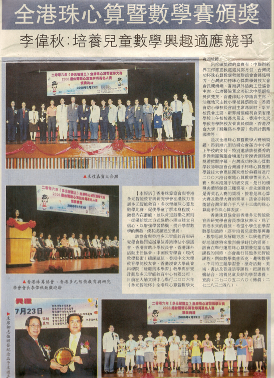 二零零六年《多元智能盃》全港珠心算暨數學大賽獲獎名單